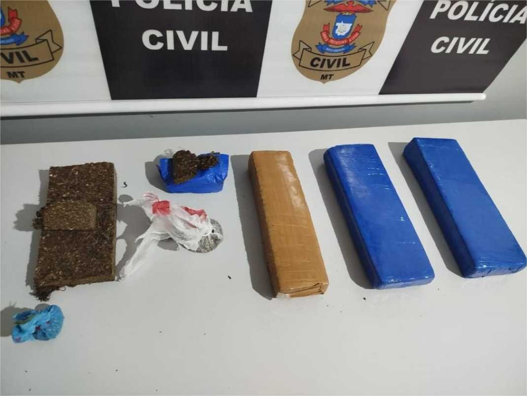 Cerca de 5kg de drogas foram apreendidas em ação da Polícia Civil, em Matupá. A apreensão foi realizada neste domingo (4.5), em consequência das diligências realizadas pelos policiais civis, imediatamente após a prisão de um jovem de 21 anos, feita um dia antes, pela Polícia Militar. O jovem é suspeito de ser o responsável pelo armazenamento e distribuição de entorpecentes na cidade de Matupá.