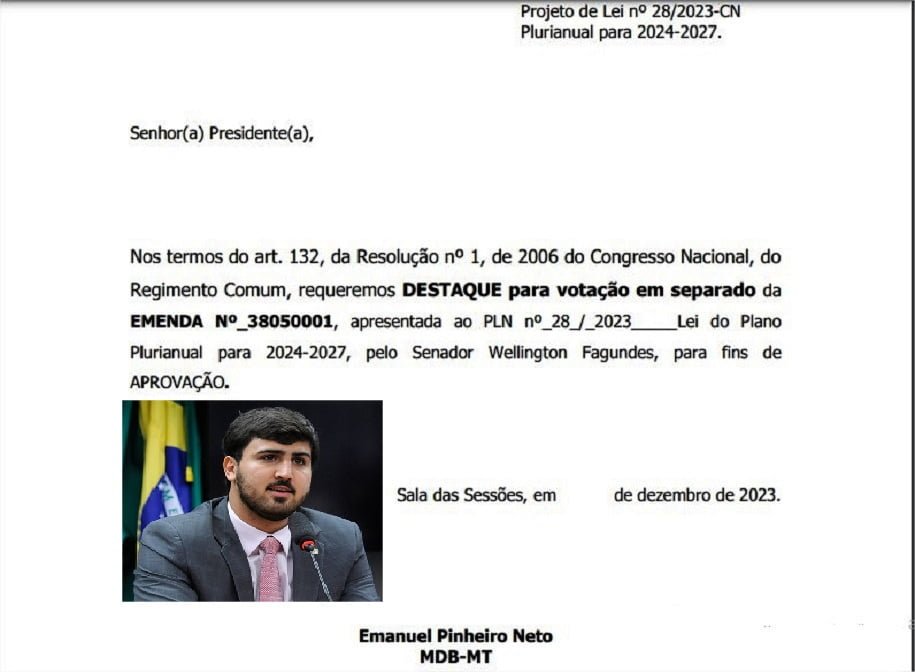 A emenda contou com o apoio do deputado Emanuel Pinheiro Neto – o Emanuelzinho (MDB) e do senador Wellington Fagundes (PL), entre outros. Também graças à coleta de assinaturas liderada pela servidora Adriane Martins, um destaque de plenário ao texto do Plano Plurianual foi aprovado, garantindo a construção de uma unidade do Hospital Sarah Kubitschek, em Cuiabá, com o investimento da União. Emanuelzinho foi autor do requerimento de destaque