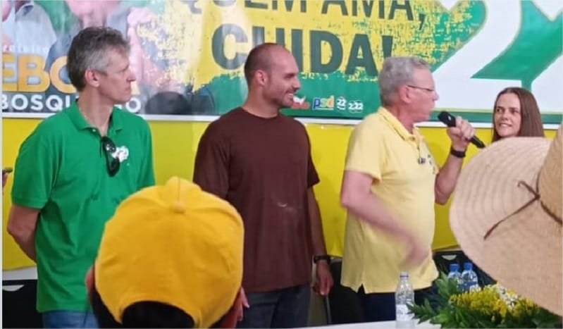 No PA Banco Safra, citou que o Eduardo Bolsonaro cobrou responsabilidade dos eleitores, para votarem em “Quem ama Deus, pátria, família e liberdade”.