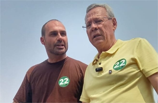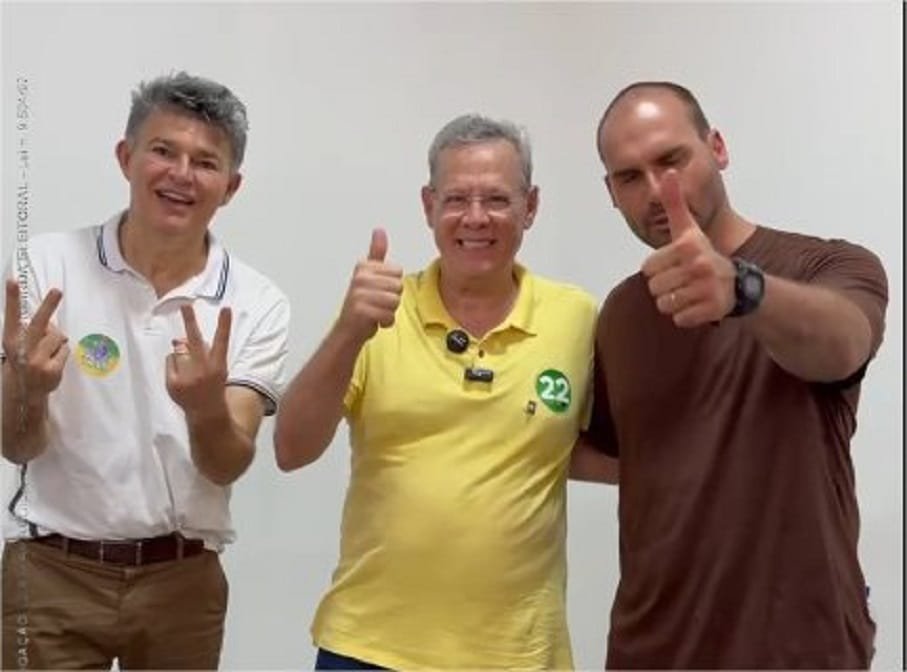 No PA Banco Safra, citou que o Eduardo Bolsonaro cobrou responsabilidade dos eleitores, para votarem em “Quem ama Deus, pátria, família e liberdade”.