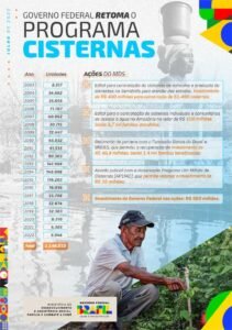Após recuperar R$ 56 milhões que seriam perdidos por problemas relacionados à gestão anterior, o Governo Federal retomou oficialmente o Programa Cisternas, iniciativa que ajuda a criar estruturas para o armazenamento de água do período das chuvas para famílias que vivem em regiões que passam por longos períodos de seca e para ampliar o acesso à água potável em regiões desassistidas. O programa teve a escala extremamente reduzida nos últimos anos.