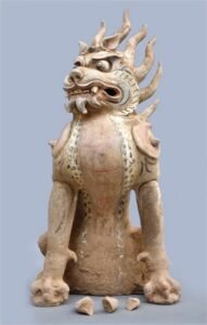 Dessa vez, foi observado que a escultura de bronze apresentava semelhanças artísticas com estátuas guardiãs de túmulos da Dinastia Tang, que governou a China de 618 a 907 d. C. Esse tipo de monumento, chamado de zhènmùshòu, frequentemente retrata criaturas híbridas.
