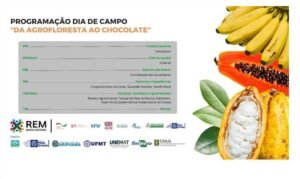 A Empresa Mato-grossense de Pesquisa, Assistência e Extensão Rural (Empaer) realiza, nesta sexta-feira (21.07), o dia de campo “Da agrofloresta ao chocolate”, que consolida o trabalho do órgão junto aos agricultores familiares e indígenas da Região Noroeste de Mato Grosso inseridos no projeto “Sistemas agroflorestais manejados participativamente com tecnologias agroecológicas em Aripuanã”.