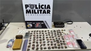 Equipes da Força Tática do 2º Comando Regional prenderam um homem, de 25 anos, e uma mulher, de 23 anos, por tráfico ilícito de drogas, em duas ações registradas no final da tarde desta terça-feira (20.1), em Várzea Grande. Nas ocorrências, a PM apreendeu tabletes e mais de 100 porções de maconha e cocaína.