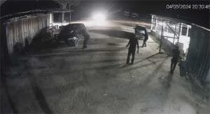 Nas imagens, é possível ver que o grupo criminoso chega à guarita da fazenda em quatro caminhonetes. Em seguida, vários homens, portando armas curtas e longas, descem gritando: “Mão na cabeça”.