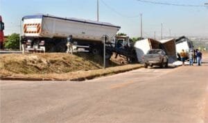Conforme informações de testemunhas, o motorista começou a fazer zigue-zague na rodovia, quando perdeu o controle da direção e saiu da pista. O veículo tombou e a carga de pedra brita ficou espalhada.