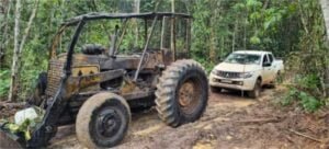 A ação resultou na apreensão de dois veículos (um trator e um caminhão), motosserra e 18 toras de madeira cambará, causando um prejuízo estimado de R$ 98 mil ao grupo criminoso.