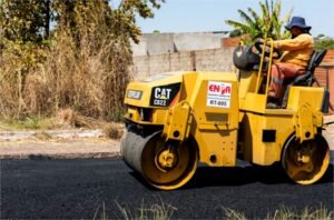 A execução segue protocolos técnicos que incluem limpeza da via, aplicação do concreto betuminoso usinado a quente (CBUq), material reconhecido pela resistência e durabilidade, além do rastelamento e compactação com rolo, garantindo nivelamento e acabamento adequados.