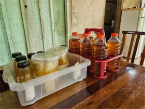 “Trabalhamos com apicultura e meliponicultura e, com a pecuária, desenvolvemos um trabalho com as abelhas. Com o apoio da Seaf e da Empaer, estamos produzindo mel de qualidade muito boa aqui no Nortão, e cada vez aperfeiçoamos mais esse trabalho. Com o apoio que o Governo tem dado, estamos satisfeitos. Outros produtores também estão empenhados, e o mel está trazendo renda para nós”, contou o seu Valdete.