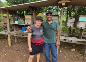 No Sítio Salmos 24, em Carlinda, onde vivem há 15 anos após deixarem a rotina da capital, o produtor Valdete Pimenta Lopes e sua esposa, Ângela Maria Rodrigues da Silva, encontraram na apicultura não só uma fonte de renda, mas um novo estilo de vida. O casal mantém dois apiários, com 60 colmeias distribuídas em 45 hectares de mata nativa e frutíferas cultivadas na propriedade, com produção crescente e acompanhamento contínuo da Empaer.