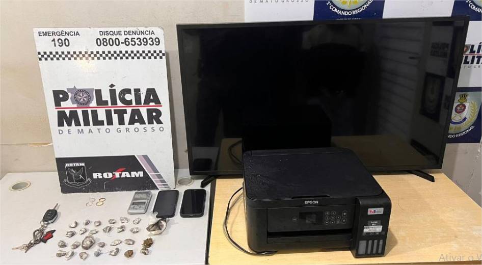 Em buscas na residência, os policiais encontraram mais bens da vítima, como uma televisão, uma impressora, um controle de TV, além de drogas e uma balança de precisão. A dupla foi conduzida à delegacia para registro do boletim de ocorrência.